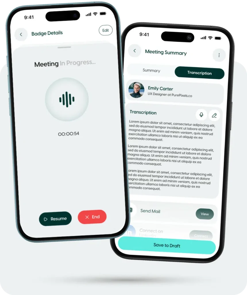 ZÜMI captures and transcribes your event meetings in real-time, generating actionable insights and follow-up recommendations—so you can focus on building relationships instead of taking notes..